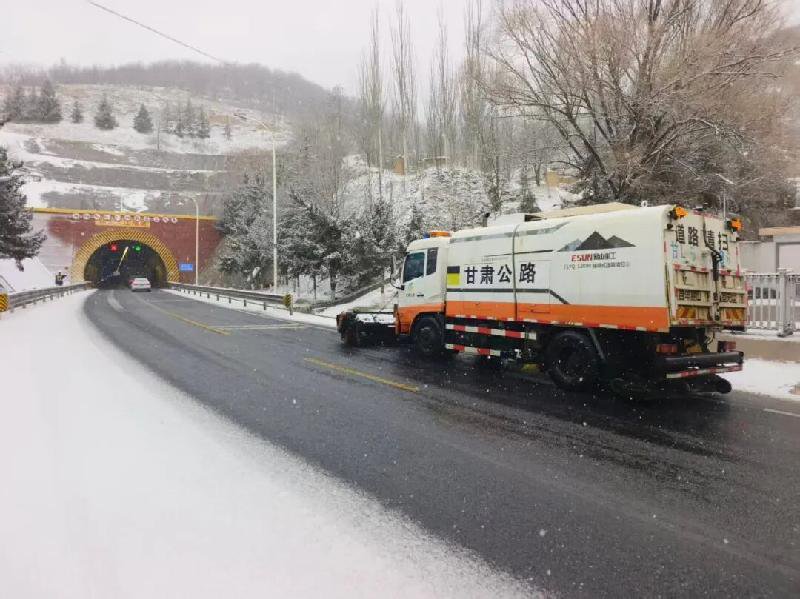 △平凉公路事业发展中心在G312线祁家大山隧道出入口开展除雪作业