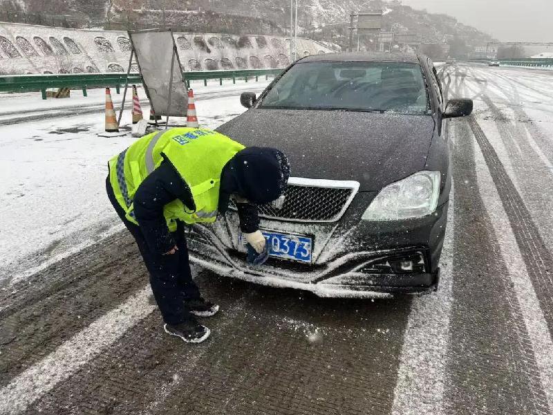 △兰州南收费所工作人员帮助司乘人员清理遮挡号牌的积雪