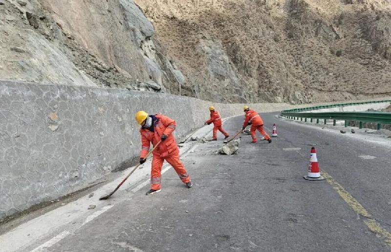 清理路面落石