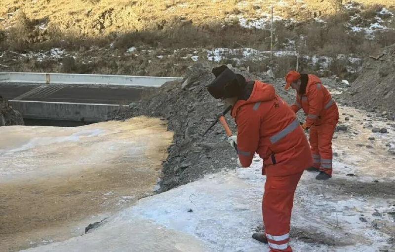 清理冰沟小桥积冰