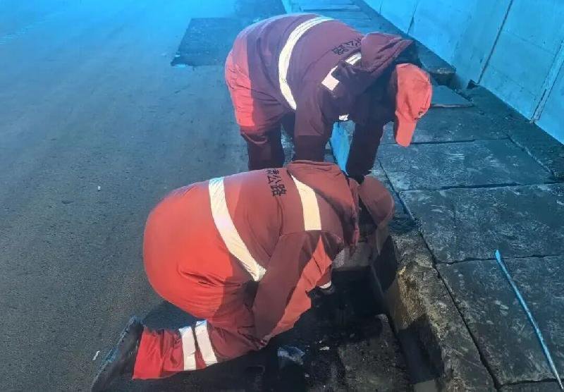 东山隧道养护人员检查引水沟